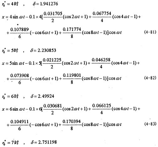 在以上工作的基礎(chǔ)上,便可根據(jù)系統(tǒng)周期解的一次表達式(4-38),得各種情況下的解析解:
