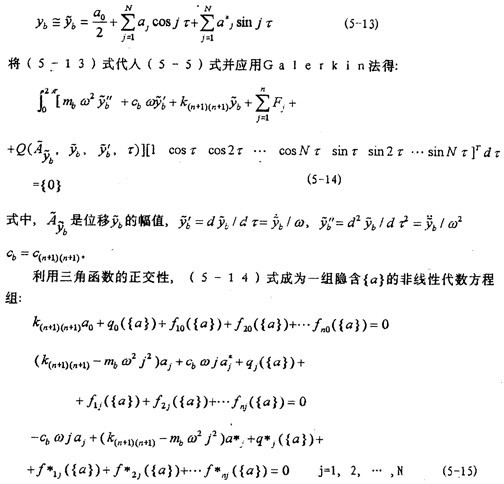 {fj({ a(k)})}是式(5-6)中恢復(fù)力Fj的傅立葉級數(shù)展開式各諧波分量的系數(shù)向量。當(dāng)向量{ a(k)}給定時,首先由5-2節(jié)中所述方法算得各個 和 (j=1,2,…,n),其次由(5-6)式中恢復(fù)力Fj的各諧波分量的系數(shù)向量{fj({ a(k)})}。