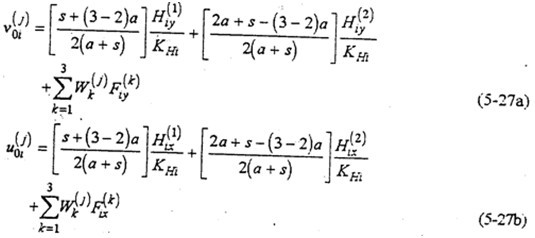 根據(jù)對(duì)三環(huán)減速器的靜不定次數(shù)計(jì)算,當(dāng)單軸輸入(n=1)時(shí),S=4,雙軸輸入(n=2)時(shí),S=5。故應(yīng)根據(jù)輸入形式,由位移協(xié)調(diào)節(jié)器條件增加4個(gè)或5個(gè)動(dòng)力分析補(bǔ)充方程。