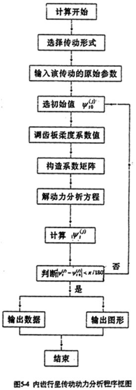 在不計(jì)各種誤差且機(jī)構(gòu)變形很小時(shí),將以上參數(shù)代入三環(huán)減速器的非線性動(dòng)力分析方程式(5-1)~(5-8)、(5-18)、(5-19)、(5-22)~(5-23)等方程,在計(jì)算機(jī)上求解,就可求得三環(huán)減速器各載荷隨工況角φ的變化規(guī)5-4為計(jì)算程圖。