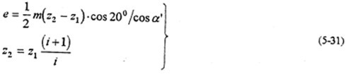由上式知,當(dāng)齒數(shù)差Z2-Z1越小或傳動(dòng)比i越大時(shí),偏心距e越;壓力角越大時(shí),偏心距e越大,則選用的行星軸承尺寸大,齒板高速軸承孔徑也就大。圖5-17是傳動(dòng)比、壓力角、以減速器行星軸承載荷的影響。由圖可見,傳動(dòng)比的變化對(duì)減速器的動(dòng)力性能影響極大;傳動(dòng)比越大,則偏心距越小。由式(5-30)分析得,行星軸承載荷必須大。壓力角的變化,對(duì)行星軸承載荷影響小得多。