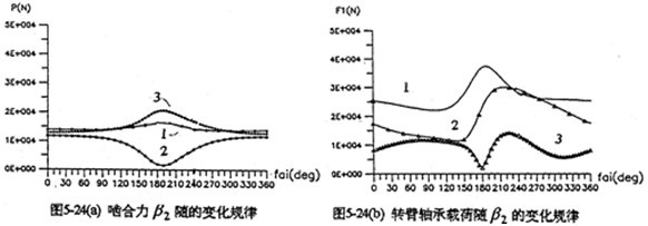 由表看出,各齒板過相同死點(diǎn)位置之不理時(shí)的嚙合力相等;某片齒板過死點(diǎn)位置時(shí),其它兩片齒板超前或者范后干該片嚙合120°與水平軸對(duì)稱。因此,這兩片的嚙合力相等,從圖5-4也反映了這一點(diǎn),這與實(shí)際情況相符合。