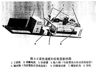 基于圖5-1所示機構(gòu),配置伺服驅(qū)動裝置、傳感器以及計算機控制系統(tǒng),獲得該柔性速度補償裝置的原型,如圖5-2所示。