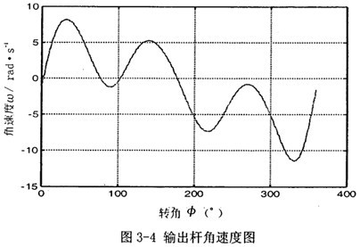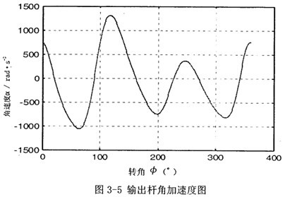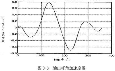 首先由圖3-2可以看到,若機構(gòu)結(jié)構(gòu)參數(shù)設(shè)計恰當,并且調(diào)整中間滑塊3偏移到合適的位置時,可在一定范圍內(nèi),產(chǎn)生一個反向的速度波適度抵消原速度波動。再由圖3-3可知,在未加入第二自由度時,加速度變化值不大,說明阻力矩和電機主動力矩不會受到大的影響,不致導(dǎo)致原機械系統(tǒng)的各項參數(shù)發(fā)生大的變化。