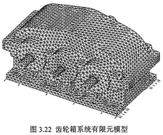 如圖3.22 所示的齒輪系統(tǒng)有限元模型,根據(jù)實際的安裝情況,為了能比較準確地反映實際狀態(tài),箱體的邊界條件為:箱體底座垂直方向約束,四個螺栓孔處全部固定約束。則研究齒輪系統(tǒng)的約束模態(tài),表3.14~3.15分別為用I-Deas軟件的Lanczos模態(tài)求解法計算得到的各重要零部件及齒輪系統(tǒng)前上10階固有頻率和響應(yīng)的振型情況。限于篇幅,圖3.23給出了齒輪系統(tǒng)的前十階固有振型。