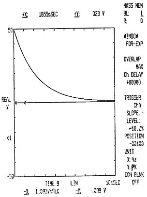 脈沖錘擊信號送入 CF-355中的S通道,響應信號送入B通道,對脈沖激勵所加的力窗函數(shù)及內觸發(fā)脈沖的方向、數(shù)值大小及位置如圖4-1示,對脈沖響應所加的指數(shù)窗函數(shù)如圖4-2示。