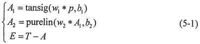 SSE=sumsqr (T-pruelin(w2*tansig(w1*P,b1),b2)) (5-3)