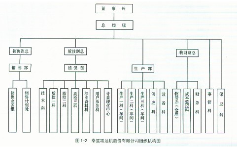 Ⅰ豐碩成果 坐落在中國蘇中平原的泰星減速機(jī)股份有限公司從1984年建廠,經(jīng)過20多年的拼搏發(fā)展,取得了驕人的業(yè)績,創(chuàng)造了許多令人難以置信的奇跡。 從當(dāng)初無資金、無設(shè)備、無產(chǎn)品、無市場的一窮二白、資不抵債的作坊式小廠發(fā)展成為現(xiàn)擁有固定資產(chǎn)3.8億元,員工2500多人,其中一程技術(shù)人員586人,占地68萬平方米的中國最大的減速機(jī)制造企業(yè),成為了中國減速機(jī)的生產(chǎn)基地,泰星減速機(jī)股份有限公司。根據(jù)2003年中國機(jī)械500強(qiáng)的排序,名列全國減速機(jī)行業(yè)榜首。 公司生產(chǎn)減速機(jī)不僅產(chǎn)量最高,銷量也最大。2004年,公司的銷售收入為5.5億元,主要產(chǎn)品的市場占有率高達(dá)25%,已經(jīng)連續(xù)11年名列全國同行首位。 20年前公司為社會(huì)創(chuàng)造了33億4千多萬元的財(cái)富,向國家交納了近4億元的稅金。 公司的產(chǎn)品遍布全國各地,并已走向德國、日本、美國等機(jī)械強(qiáng)國,國家的重點(diǎn)工程項(xiàng)目,從三峽水利工程,江陰長江大橋建設(shè)工程,黃河小浪底工程,葛洲壩工程,西氣東輸工程到南水北調(diào)工程等都在使用泰星的產(chǎn)品。 泰星減速機(jī)股份有限公司組織機(jī)構(gòu)圖見圖1-2。在公司目前的2500多名員工中,有50%為當(dāng)?shù)剞r(nóng)民,大專以上學(xué)歷的僅占20%,其余的皆為初、高中以下學(xué)歷,但他們卻生產(chǎn)出了國內(nèi)領(lǐng)先、國際一流的產(chǎn)品。 泰星牌減速機(jī)成為中國減速機(jī)行業(yè)惟一的國家“121”重點(diǎn)保護(hù)名優(yōu)產(chǎn)品。