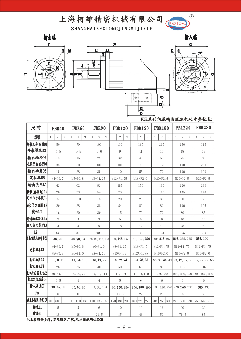FBR系列伺服直角行星減速器分: FBR40、FBR60、FBR90、FBR120、FBR150、FBR180、FBR220、FBR280、同軸式機(jī)座型號(hào),速比:1-1000有20多個(gè)比速可選擇;分一、二、三級(jí)減速傳動(dòng);精度:一級(jí)傳動(dòng)精度在4-6弧分,二級(jí)傳動(dòng)精度在6-8弧分,三級(jí)傳動(dòng)精度7-10弧分;等一千多種規(guī)格。