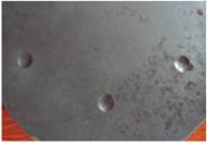 圖1 稀土增強(qiáng)陶瓷涂層2000h腐蝕 圖2 WC30%+Fe陶瓷涂層1500h腐蝕樣品 圖3 CrC陶瓷涂層1500h腐蝕樣品 圖4 4Cr13鋼800h腐蝕樣品 涂層抗變形能力測試結(jié)果如圖5和圖6所示。實驗采用布氏硬度壓痕法,鋼球直徑10mm,載荷1800N,測試樣品經(jīng)1500h腐蝕測試后進(jìn)行壓痕測試。 圖5 稀土增強(qiáng)陶瓷涂層壓痕樣品 圖6 CrC陶瓷涂層樣品 5 展望 在熱噴涂耐磨涂層,尤其在螺桿泵技術(shù)領(lǐng)域的涂層采用真空浸滲技術(shù)封堵涂層缺陷的報道還鮮有報道,且未見成果應(yīng)用。開展這一領(lǐng)域研究,在國內(nèi)具有一定的技術(shù)先進(jìn)性,在螺桿泵行業(yè)也有領(lǐng)先技術(shù)的優(yōu)勢。 寧波鎮(zhèn)海減變速機(jī)公司借助了國防工業(yè)設(shè)備及技術(shù)的先進(jìn)優(yōu)勢,在噴涂技術(shù)途徑上采用了先進(jìn)的超音速火焰噴涂技術(shù)和等離子噴涂技術(shù),獲得了優(yōu)良的涂層質(zhì)量。涂層防腐技術(shù)途徑采用了真空封堵技術(shù)途徑,有效克服了噴涂涂層的制備缺陷,同時也有效地提高了涂層的結(jié)構(gòu)強(qiáng)度。 目前,在涂鍍層上應(yīng)用真空浸滲技術(shù)封堵涂鍍層中的缺陷的已有研究,但進(jìn)展較慢,由于受封堵劑的限制,在納米粒子浸滲劑的領(lǐng)域落后國外。目前兵器行業(yè)某研究所從匈牙利引進(jìn)的真空封堵劑采用了硅酸鹽納米粒子技術(shù),使得鋁、鎂合金微弧氧化層、鋁合金陽極化層的封堵獲得良好效果,使得涂層的耐腐蝕性能成倍獲得提高。同時,在涂層與基體界面的處理上,采用了無裂紋涂鍍層技術(shù),無晶化鍍層處理,有效提高了基體的抗腐蝕性能,使45鋼基體達(dá)到不銹鋼的耐酸堿腐蝕能力,有效增加了涂層的抗腐蝕性能。