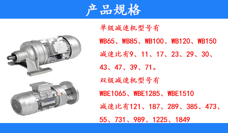A、WB系單級減速機型號有:WB65、WB85、WB100、WB120、WB150