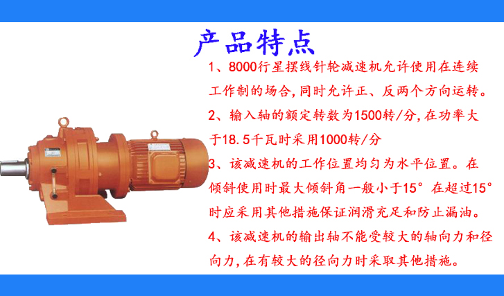 1、8000行星擺線針輪減速機允許使用在連續(xù)工作制的場合,同時允許正、反兩個方向運轉。