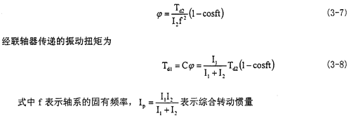 對于某一已定的傳動軸系,轉(zhuǎn)動慣量和固有頻率可由計算求得,如果已知所傳扭矩的變化規(guī)律,如振幅和頻率等,就能建立起軸系在扭轉(zhuǎn)振動式的運動微分方程,對該方程求解,即可得到所需的聯(lián)軸器的剛度。