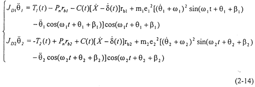 當不考慮偏心質(zhì)量,而只考慮存在齒輪齒側(cè)間隙時,方程組(2-14)可化為: