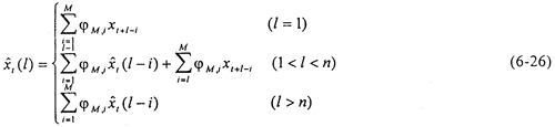 對(6-30)式求導(dǎo)或做累減還原處理,可得原始時間序列{xt}的預(yù)測公式: