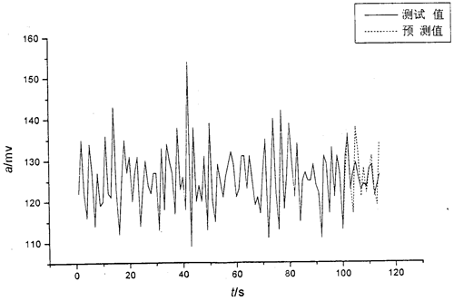 本節(jié)對在某車床上采集的振動信號用AR(M)模型進行預(yù)測,表6-8為測試數(shù)據(jù)值,預(yù)測結(jié)果見圖6-5(圖中,a-振動加速度,t-時間),與實測結(jié)果相比,AR(M)模型預(yù)測誤差最大點為6.22%,最小點為0.34%,基本符合預(yù)測要求。