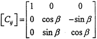 如圖2-21所示,坐標系OXjYjZj可以看作是坐標系OXiYiZi繞Xi(或Xj)旋轉(zhuǎn)了一個角β度。旋轉(zhuǎn)的方向余弦矩陣為: