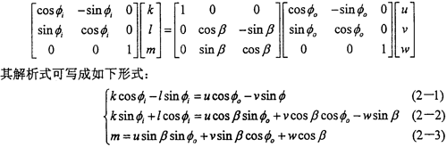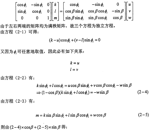 進行坐標變換有:(即由坐標系OXjYjZj變換到坐標系OXiYiZi其中(Xi,Yi,Zi),(Xj,Yj,Zj)分別表示某點在兩坐標系中的坐標。)