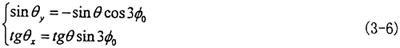 由式(3-6)可知|θy|<θ,|θx|<θ一般來說θ值非常小,則θy和θx則更小。到此方向余弦矩陣[Coo″]的所有項均可求出。其具體的形式如下(為簡化書寫將θy作為已知參數(shù)代入):