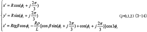 3.2.4.3.2 小桿(球面中心P)相對于三叉桿軸頸的運動小桿的球面中心P在動坐標(biāo)系O″X″Y″Z″中的參數(shù)方程為: