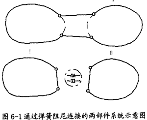 設(shè)有部件I和部件Ⅱ,通過彈簧和阻尼構(gòu)件相連接,如圖6-1所示。對于部件I,應(yīng)用