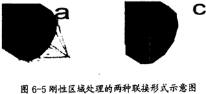 剛性區(qū)域的處理是基于小變形理論,通過這種處理,單個(gè)構(gòu)件的自由模態(tài)頻率會(huì)上升,只有通過這種處理可以在ADAMS中進(jìn)行模態(tài)疊加和模態(tài)綜合,得出系統(tǒng)的固有頻率。其處理的方法是根據(jù)構(gòu)件間的不同的運(yùn)動(dòng)副連接形式,用點(diǎn)質(zhì)量單元上的節(jié)點(diǎn)(有時(shí)物體上自己的節(jié)點(diǎn)也可,不一定非要再建立質(zhì)量單元)和實(shí)體上相應(yīng)的節(jié)點(diǎn)進(jìn)行耦合,形成主節(jié)點(diǎn)和從節(jié)點(diǎn)關(guān)系,構(gòu)成剛性區(qū)域。其連接形式如圖6-5,在此圖的連接形式中,a圖的連接形式可以傳遞所有載荷形式,是一種推薦的連接方式;c圖中主節(jié)點(diǎn)僅同單個(gè)從節(jié)點(diǎn)相連傳遞的載荷形式有限,不合適選用。