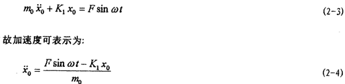 對應(yīng)的力學(xué)模型如圖2-3(見22頁)所示,式中m1為振動(dòng)臺(tái)動(dòng)圈、聯(lián)軸器外套及固定在振動(dòng)臺(tái)上夾具的質(zhì)量;m2為聯(lián)軸器內(nèi)套、芯軸及配重的質(zhì)量;K1為振動(dòng)臺(tái)支撐動(dòng)圈部分的剛度系數(shù),K2為聯(lián)軸器彈性元件的剛度系數(shù);C1為振動(dòng)臺(tái)動(dòng)圈阻尼系數(shù);C2為聯(lián)軸器