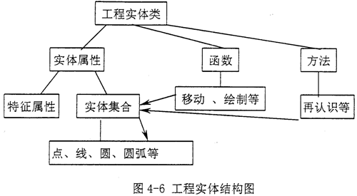 單個實體是通過點、直線、圓、圓弧等信息的集成而體現(xiàn)的,因此,在對實體類進行定義時,可充分利用AutoCAD中的“實體集合”這個設(shè)計概念,把*.dwg圖形數(shù)據(jù)庫中的若干幾何信息集成起來,使之成為一個整體,再將此“實體集合”并入實體類的一個屬性(見圖4-6),當(dāng)實體在繪制、移動等操作中被調(diào)用。