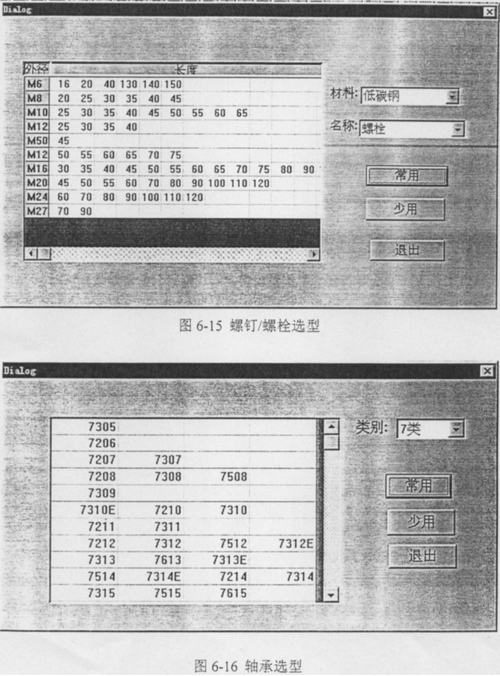 針對(duì)企業(yè)的實(shí)際需求,在庫存-設(shè)計(jì)模塊,控制設(shè)計(jì)人員對(duì)螺釘/螺栓(見圖6-15)和軸承(見圖6-16)的選型。盡可能減少零件的庫存量,從而達(dá)到合理利用企業(yè)的資源。