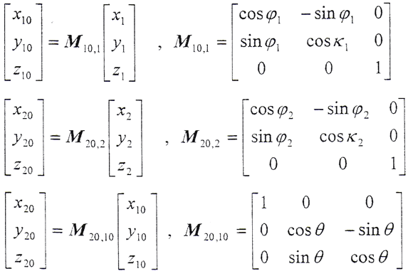 四個坐標系有共同的原點O,x10與x20軸線重合,z10與z20軸線夾角為兩齒輪軸線的軸交角θ(y10與y20軸線的夾角亦為θ)。