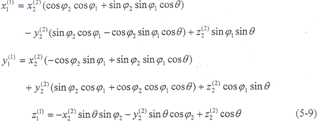 令φ1=φ2=φ,將(5-2)式及由(5-8)式解出的t2代入(5-9)式,即可得到以ψ2、φ為參變量的外齒輪齒面方程: