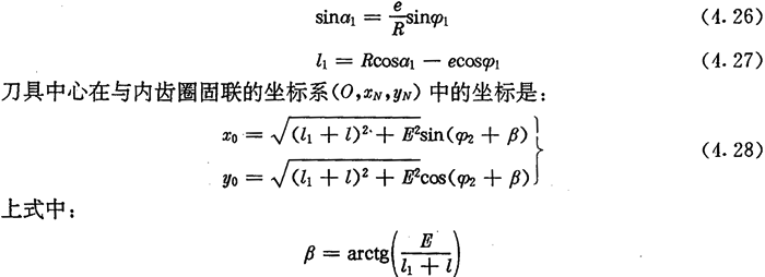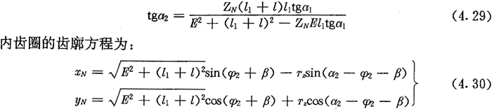 若令(4.30)式和(4.31)式中的E=0,得到的就是無偏距時(shí)的內(nèi)齒圈齒廓理論方程式(2.21)及公法線長度(4.18)式。