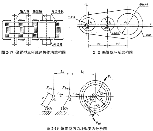 偏置型三環(huán)減速機的環(huán)板軸承所受載荷比對稱型三環(huán)減速機大很多,在設計和實際使用中應盡量避免采用這種結構布置形式。雖然對稱B型和偏置型三環(huán)減速機的受力性能不如對稱A型三環(huán)減速機,但是由于它們的兩個輸入軸比較接近,故而易于實現(xiàn)雙驅動。