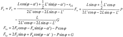 如果不計兩上支承軸重力的影響,則兩上支承軸O2B、O3C可看作二力桿,它的作用力如圖所示。不考慮制造誤差和載荷分配不均勻因素的影響,可以補充方程:F2=F3,則聯(lián)立求解得到: