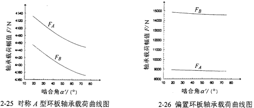嚙合角α′是三環(huán)減速機內嚙合傳動的重要參數,由嚙合角的變化而引起的環(huán)板軸承載荷的變化規(guī)律可以得到某些重要結論。環(huán)板軸承載荷幅值隨嚙合角變化的曲線如圖2-25、2-26所示。