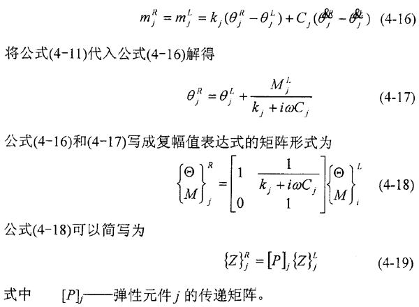 從建立的動(dòng)力學(xué)模型圖4-4可以看出,該模型由慣性元件、彈性元件和阻尼元件組成,因此,只要獲得了這幾種元件的數(shù)學(xué)模型,就可以利用傳遞矩陣法建立起整個(gè)減速器系統(tǒng)的動(dòng)力學(xué)模型。