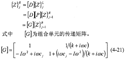 組合式(4-14)和(4-19),可建立第j-1個(gè)剛性圓盤右側(cè)和第j個(gè)剛性圓盤右側(cè)狀態(tài)矢量間的關(guān)系。