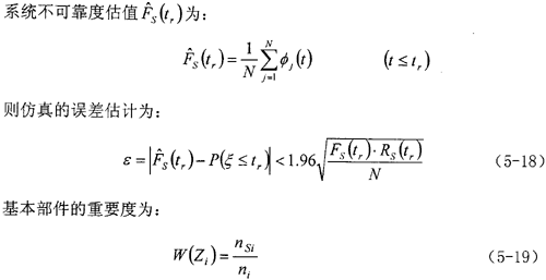 將(5-11)代入(5-9)、(5-10)中,得到第j次抽樣的基本事件的狀態(tài)向量Xμ(t)和頂事件的狀態(tài)變量,若系統(tǒng)失效時(shí)刻為tkj,則有