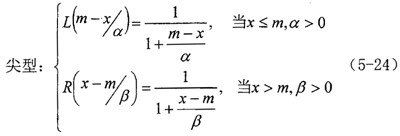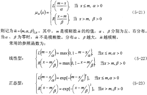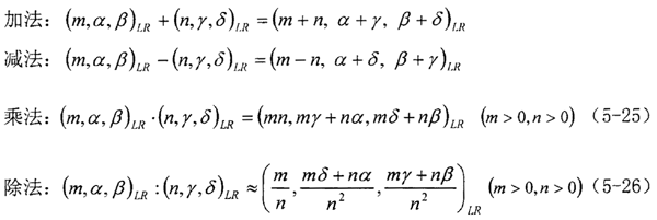 式(5-25)、(5-26)是近似的,嚴(yán)格地說(shuō),兩個(gè)L-R型模糊數(shù)相乘或相除,其結(jié)果不再是L-R型模糊數(shù)。