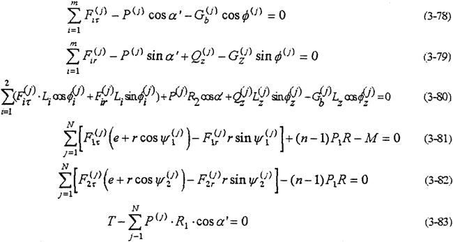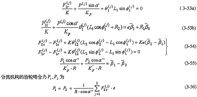 ——共可得到4個方程。由式(3-59)-(3-63)就構(gòu)成多相并列雙曲柄機構(gòu)輸入式二齒環(huán)內(nèi)齒行星傳動機構(gòu)的動力分析數(shù)學模型。