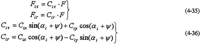 將軸承載荷加以處理后,就可以得到行星軸承與偏心套接觸點的載荷與軸承總載荷的關系。如圖4-7所示,若偏心套與軸承的接觸中心與坐標軸r的角為φ。則各節(jié)點載荷在r和τ方向的分量由式(4-29)和式(4-32)變換得