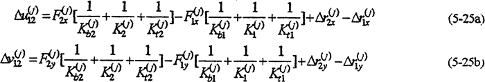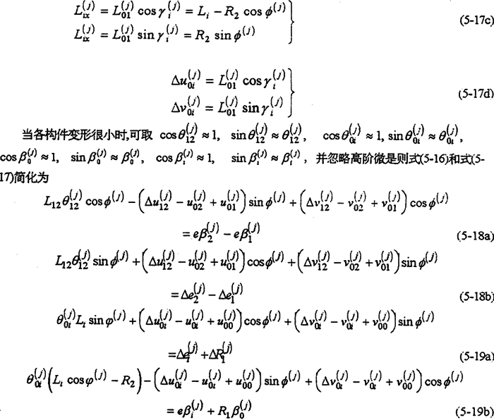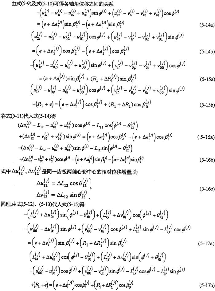 式(5-18)中的△u(j)12,△u(j)12為機(jī)構(gòu)變形后兩偏心套中心之間的長度L12產(chǎn)生的增量分量,它包括齒板兩高速軸孔之間的相對(duì)變