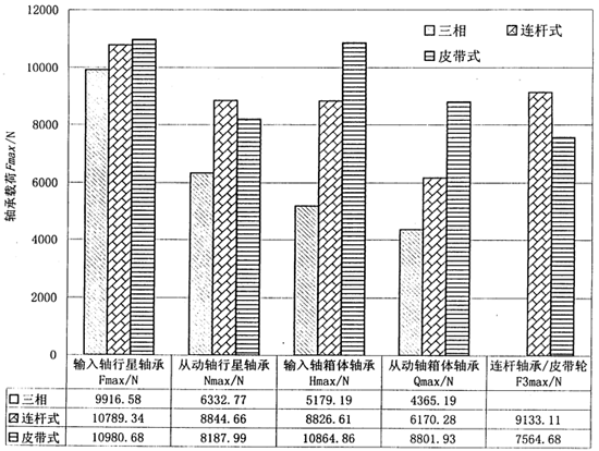 圖3.23 考慮質(zhì)量時三類減速器軸承載荷比較