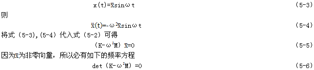 設(shè)多自由度系統(tǒng)自由振動(dòng)中某一簡(jiǎn)諧振動(dòng)形式的解為