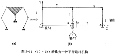 受此啟發(fā),并基于可調(diào)整機構(gòu)的原理,經(jīng)過適當?shù)恼{(diào)整,如圖2-17所示,認為圖2-18所示的連桿機構(gòu)可以滿足設(shè)計需求。