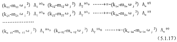 式(5.1.12)(5.1.13)都稱為系統(tǒng)的特征方程或頻率方程,將其展開后可得到(ωn2的n次代數(shù)方程式: