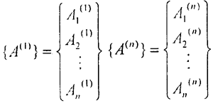 求得各階固有頻率ωni后,將方程5.1.6劃去其中不獨(dú)立的某一式,并將剩下的n-1個(gè)方程中的某一相同的Ai項(xiàng)(這里取最后一項(xiàng)),移到等式右邊,把某一ωnj2的值代入ω2后,得如下方程組:
