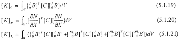 對(duì)式5.1.18,我們將等號(hào)左端三個(gè)矩陣的各用[K]T表示,稱切線剛度陣,它表示了載荷增量與位移增量之間的關(guān)系。