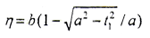 △的計(jì)算如下,設(shè)鼓形齒鼓度曲線為一橢圓,參數(shù)為長半軸a,短半軸b,當(dāng)a=b時(shí)為圓弧。在鼓度曲線上建立局部坐標(biāo)系(o′,ξ,η),o′為齒寬中線與分度圓線交點(diǎn),ξ與z1方向相同,η為指向齒輪軸線的方向。在此坐標(biāo)系上橢圓方程為