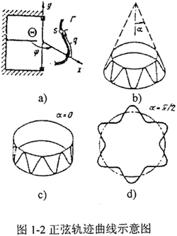 正弦活齒傳動(dòng)屬于活齒少齒差行星齒輪傳動(dòng),是一種利用鋼球和正弦滾道組成的滾動(dòng)嚙合變速裝置。按照正弦曲線軌跡所在回轉(zhuǎn)面的類型,正弦活齒傳動(dòng)可分為平面正弦活齒、圓柱正弦活齒及圓錐正弦活齒傳動(dòng)等,圖1-2所示為共扼正弦曲線軌跡的示意圖。當(dāng)φ從0到2π變化,正弦曲線Γ在回轉(zhuǎn)面上被描述出來。如果Θ代表主動(dòng)軸坐標(biāo)系,則曲線Γ表示主動(dòng)軸回轉(zhuǎn)面上的正弦曲線,若Θ代表殼體坐標(biāo)系,則曲線Γ表示殼體回轉(zhuǎn)面上正弦曲線。回轉(zhuǎn)面可以是錐面(圖1-2b)、圓柱面(圖1-2c)、平面(圖1-2d),還可以為拋物面、雙曲面、超環(huán)面等。若按與活齒嚙合的正弦滾道數(shù)目劃分,正弦活齒傳動(dòng)可分為雙正弦活齒傳動(dòng)(圖1-3)和三正弦活齒傳動(dòng)(圖1-4)。